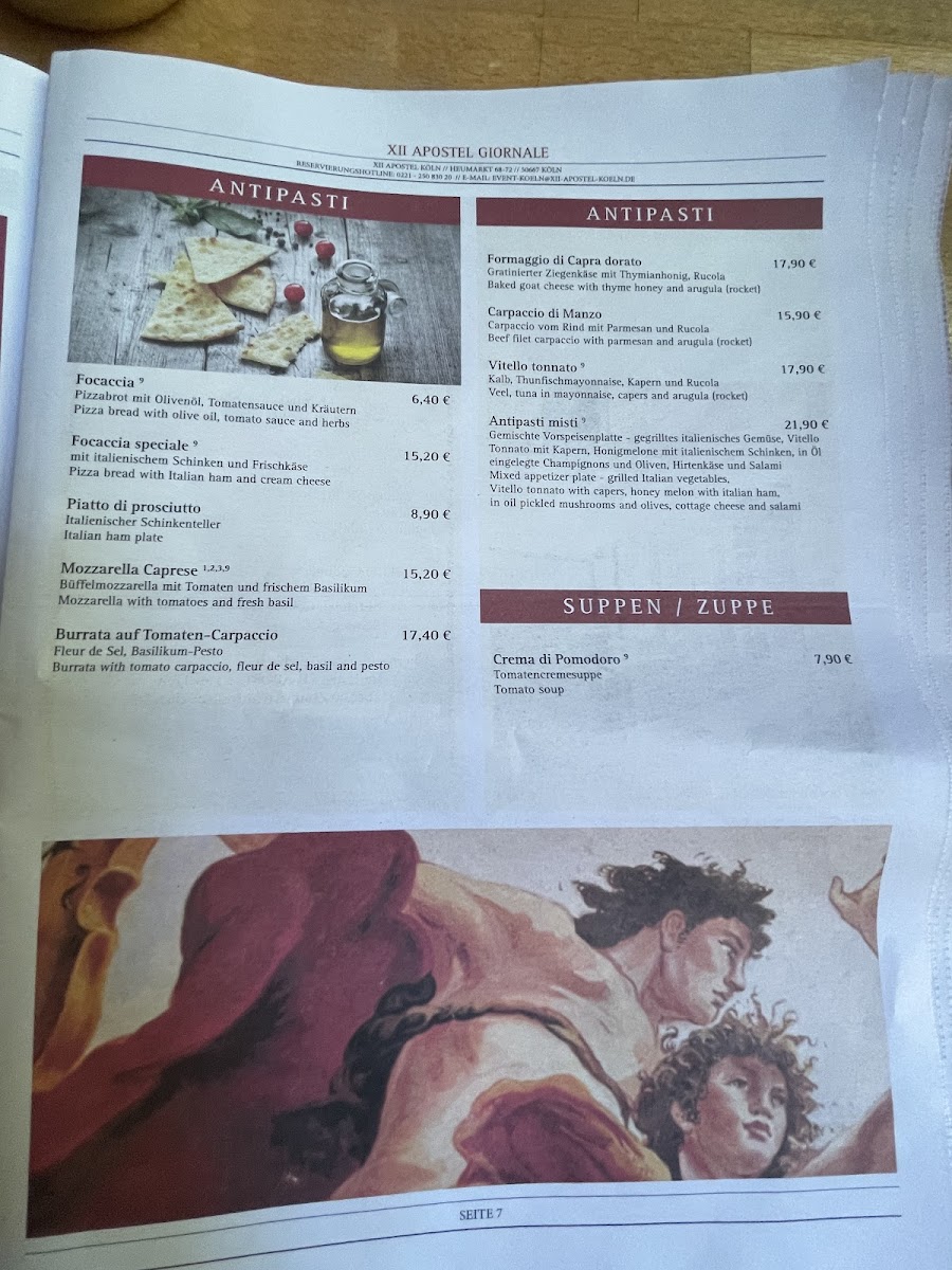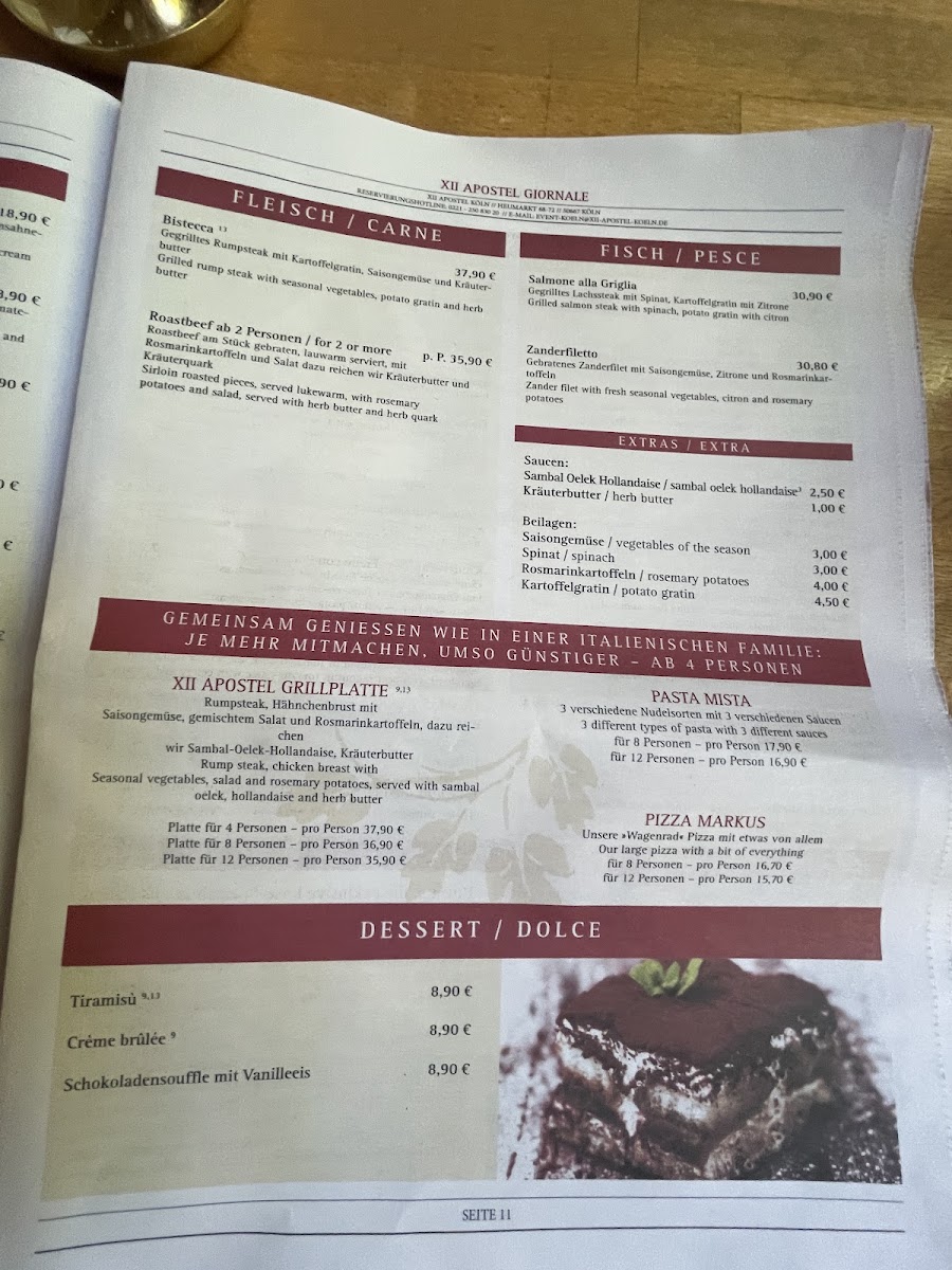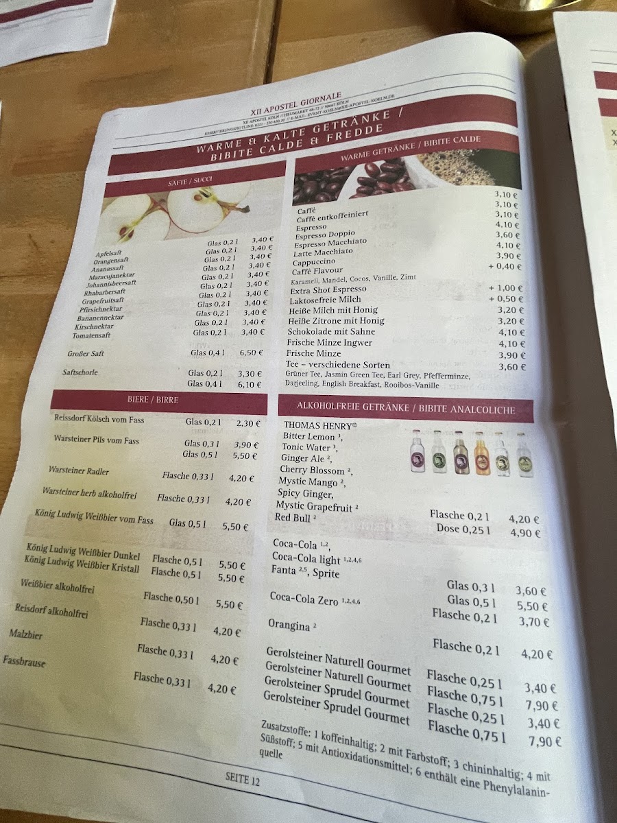XII Apostel Koln Menu